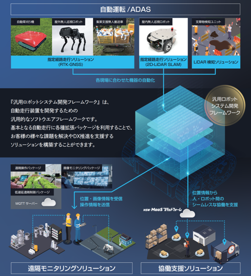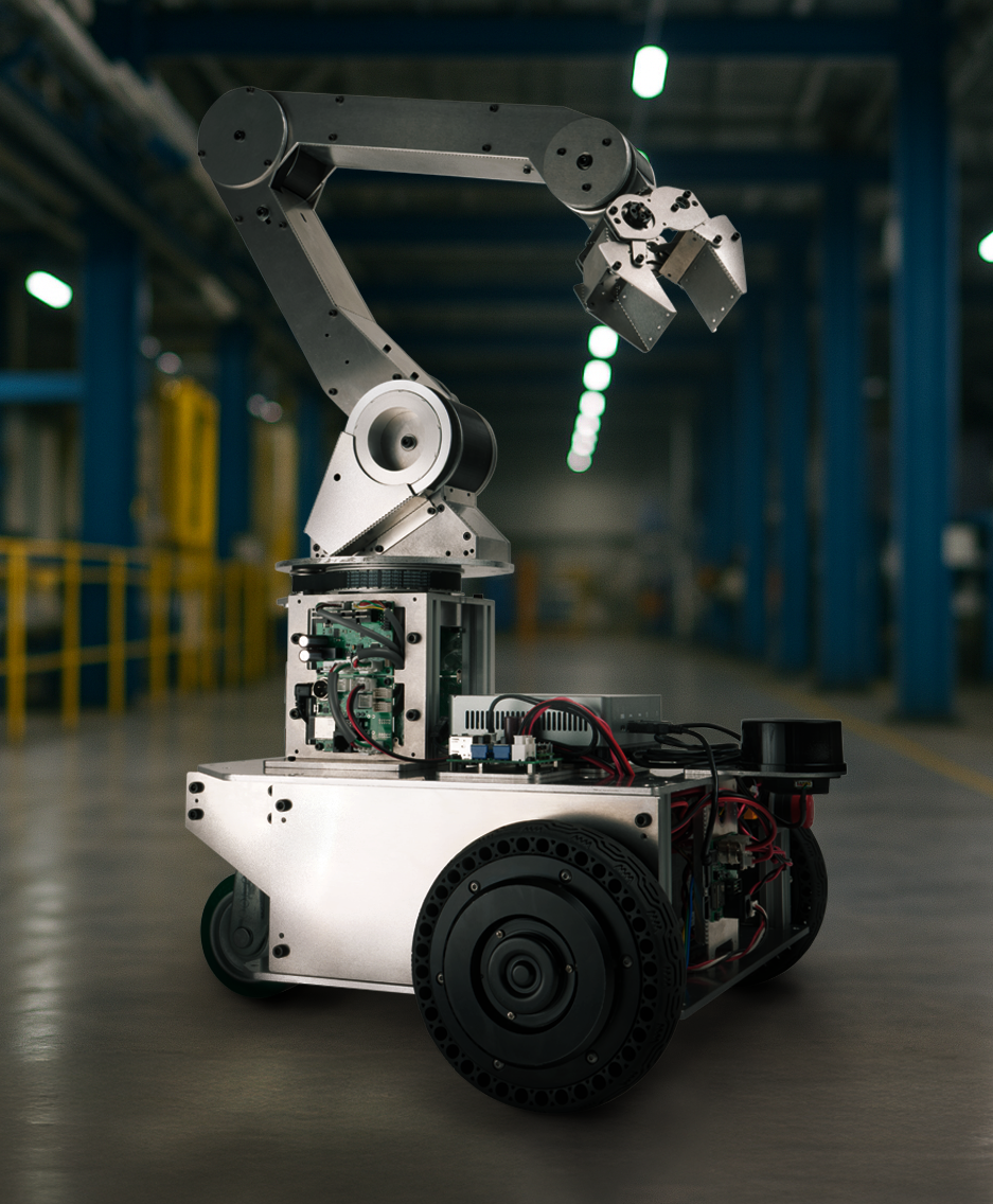 二輪駆動、四輪(メカナムホイール搭載)型、四輪独立ステアリング型など、台車ロボットとしての動きの自由度を高めた構成になっています。
