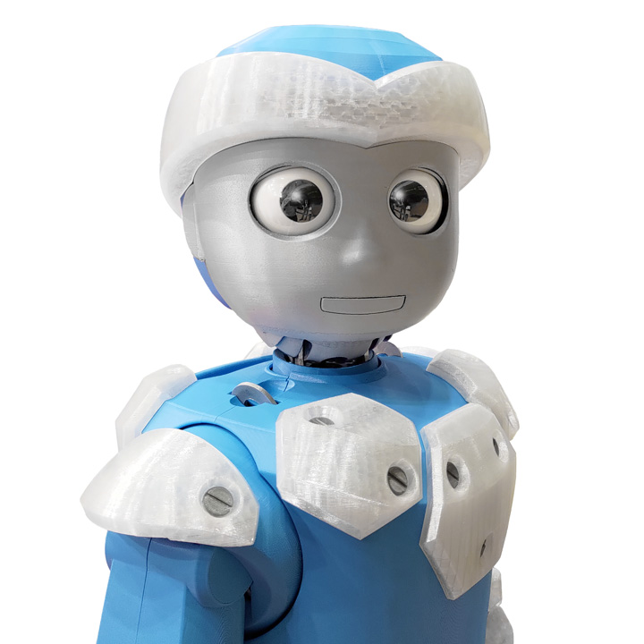 親しみやすい表情や目線の変化を表現できる、大型二足歩行ロボットのプロトタイプです。